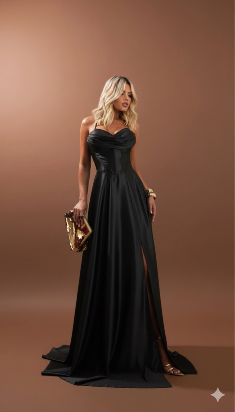 O vestido Duda é um modelo elegante e sofisticado, com tecido acetinado de alta qualidade que oferece um caimento impecável. Na cintura possui costuras com modelagem corselete e uma fenda lateral que dá um toque de sensualidade na medida certa. Perfeito para casamentos, formaturas e outras celebrações especiais.